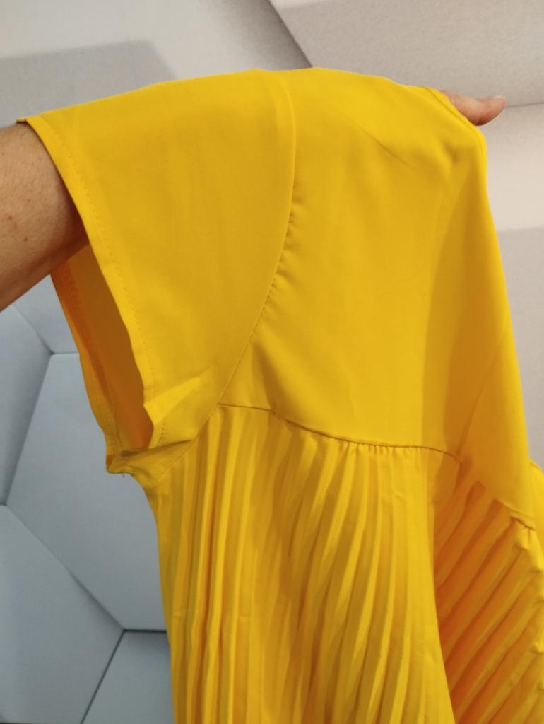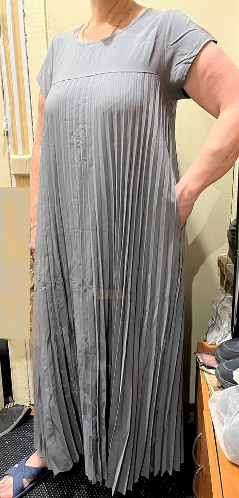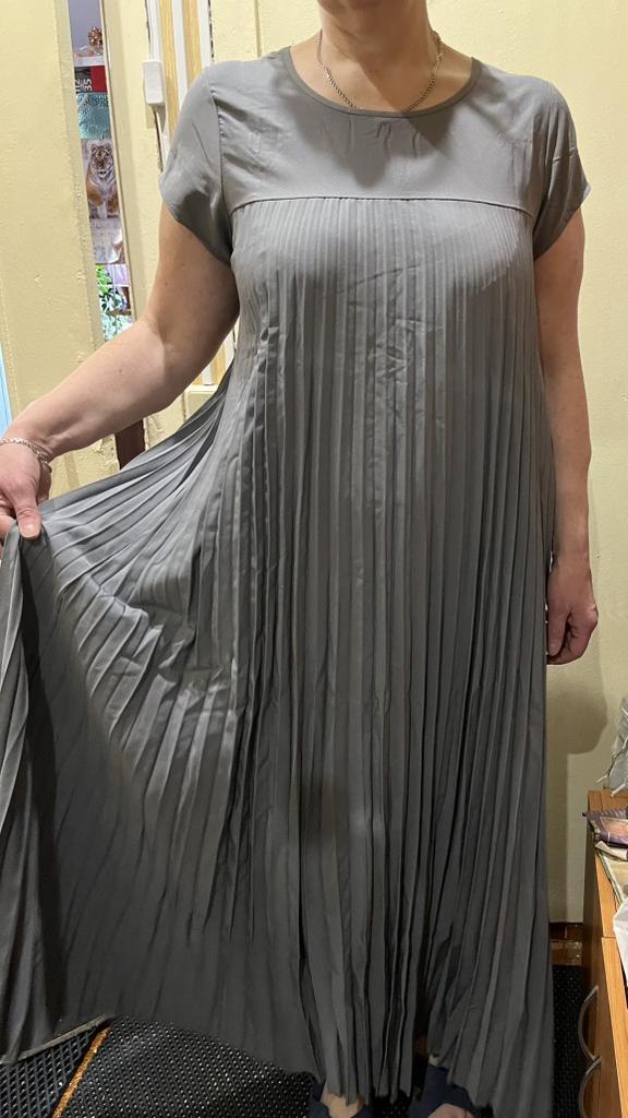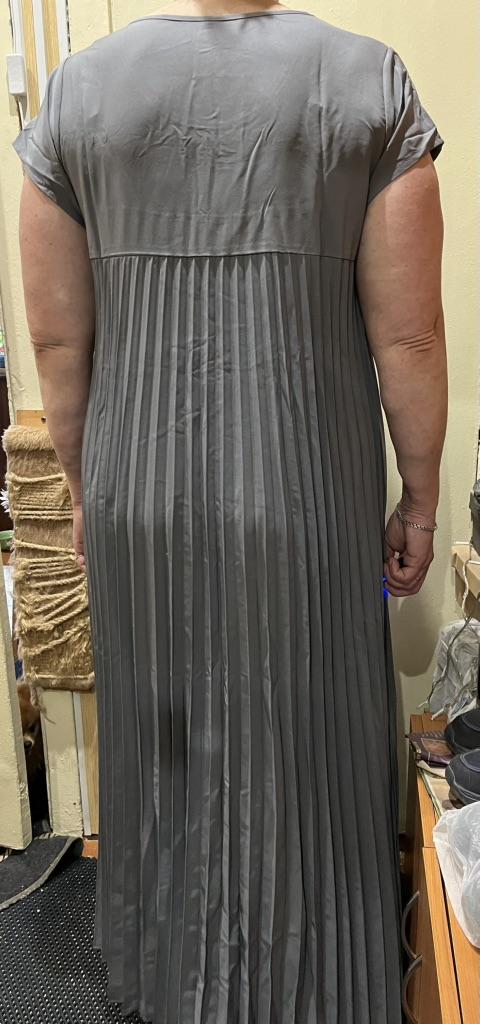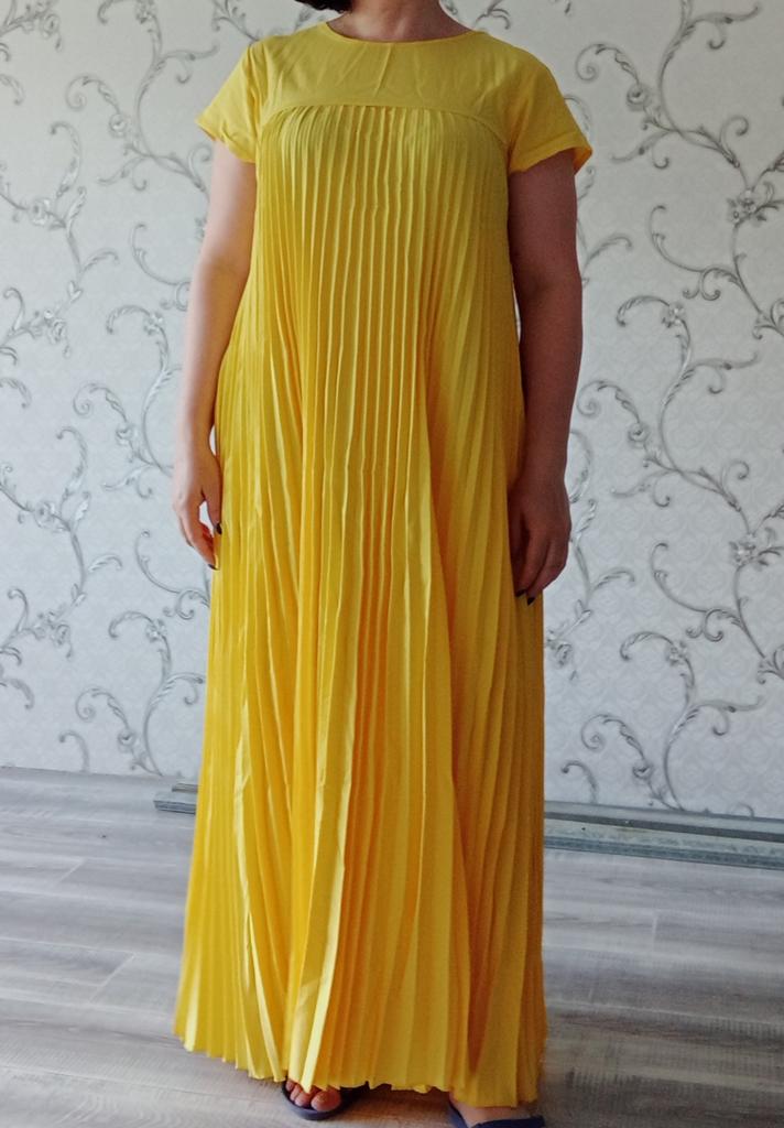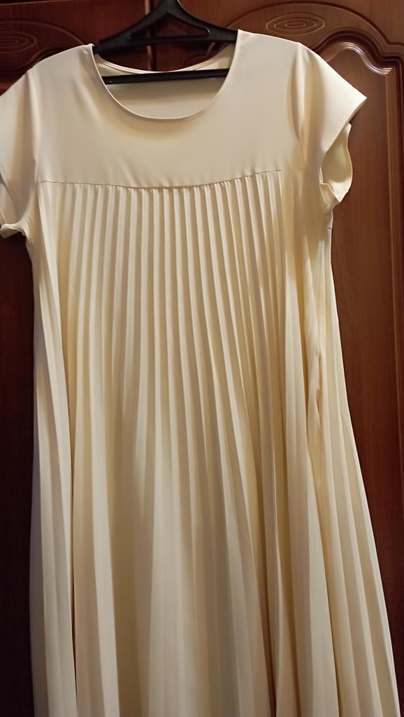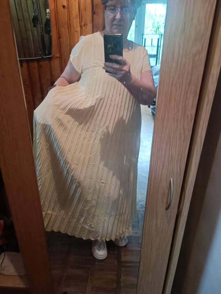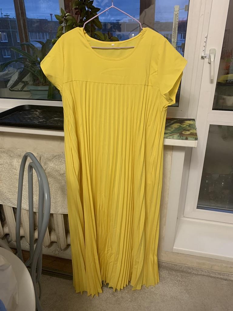 The dress is beautiful. Delicate. A little bit translucent. But because of the large pleated volume it is not noticeable. 👍👍👍Super for the summer! Thank you very much. I wear size 50. Exactly the size👍