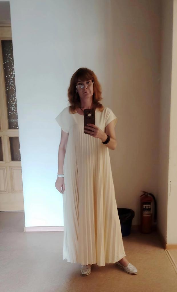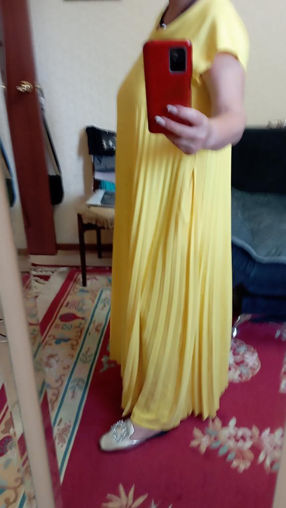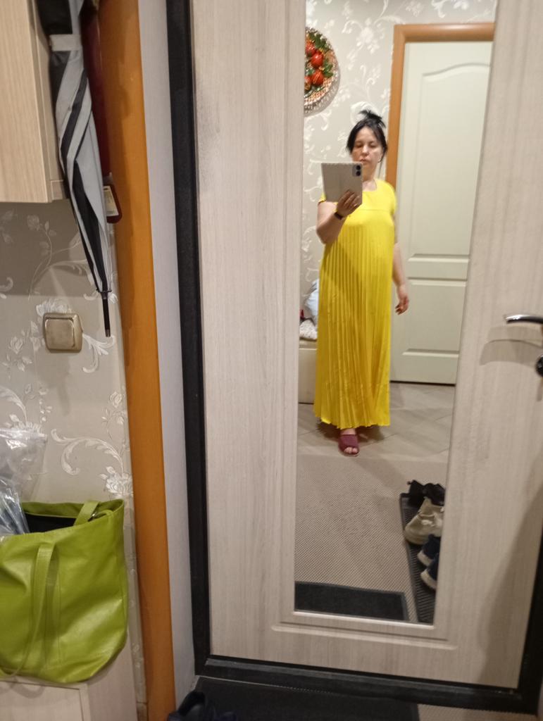 Very beautiful dress: light, spacious, hides all imperfections. Depending on the accessories and shoes, it can be both casual and evening.. Thanks to everyone involved!!!