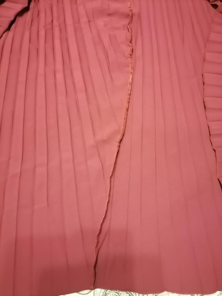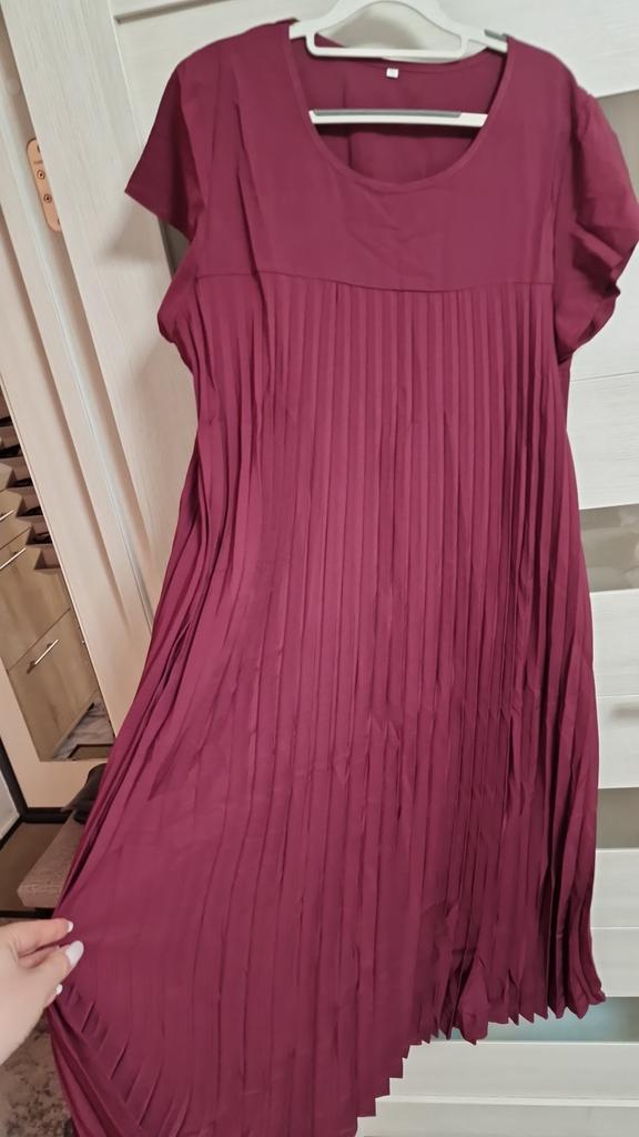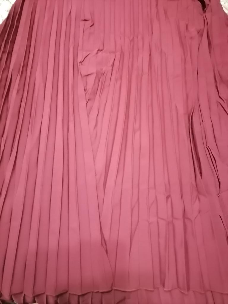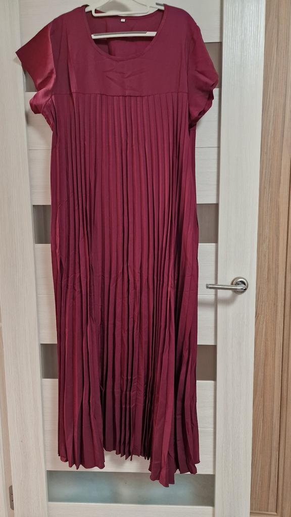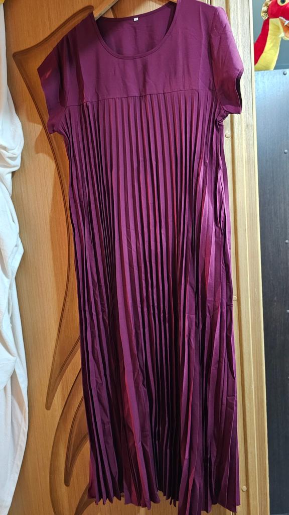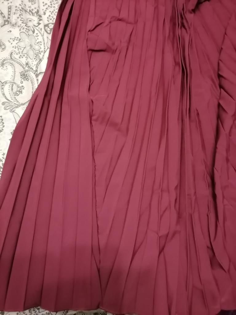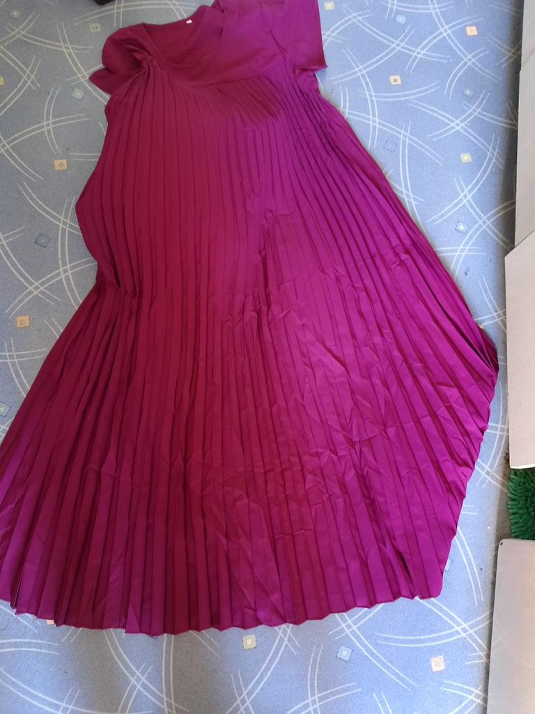Good fan-pleated dress. The fabric is the best of similar dresses from Zanzea. The color is burgundy-plum.