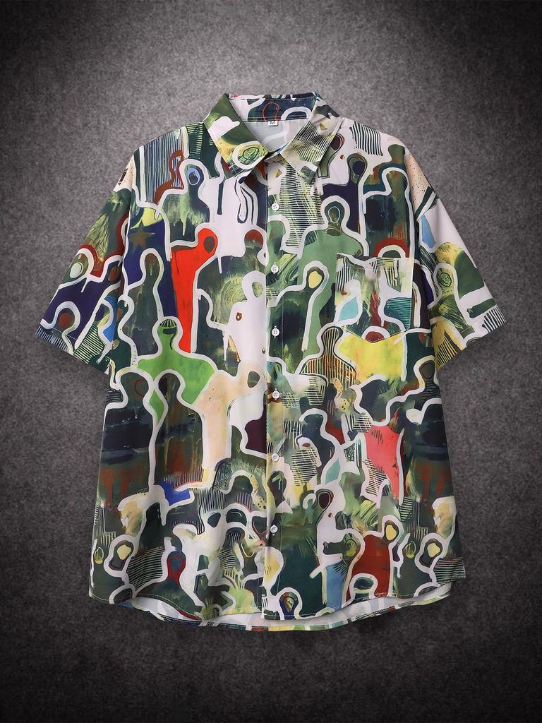 Sycpman Oversized Casual Hawaii Short Shirt Man American Personalized Printing Summer Versatile Loose Couple Men Streetwear