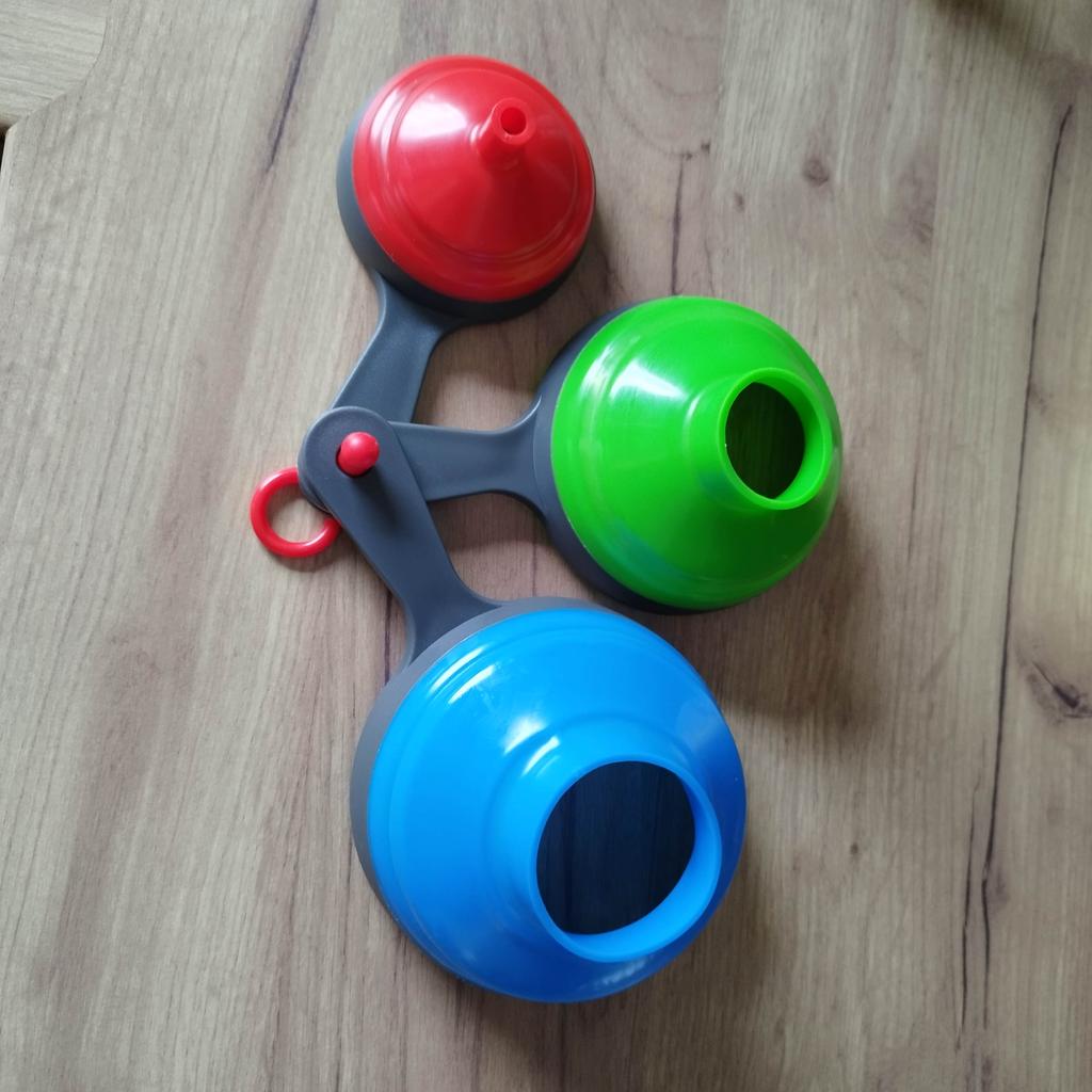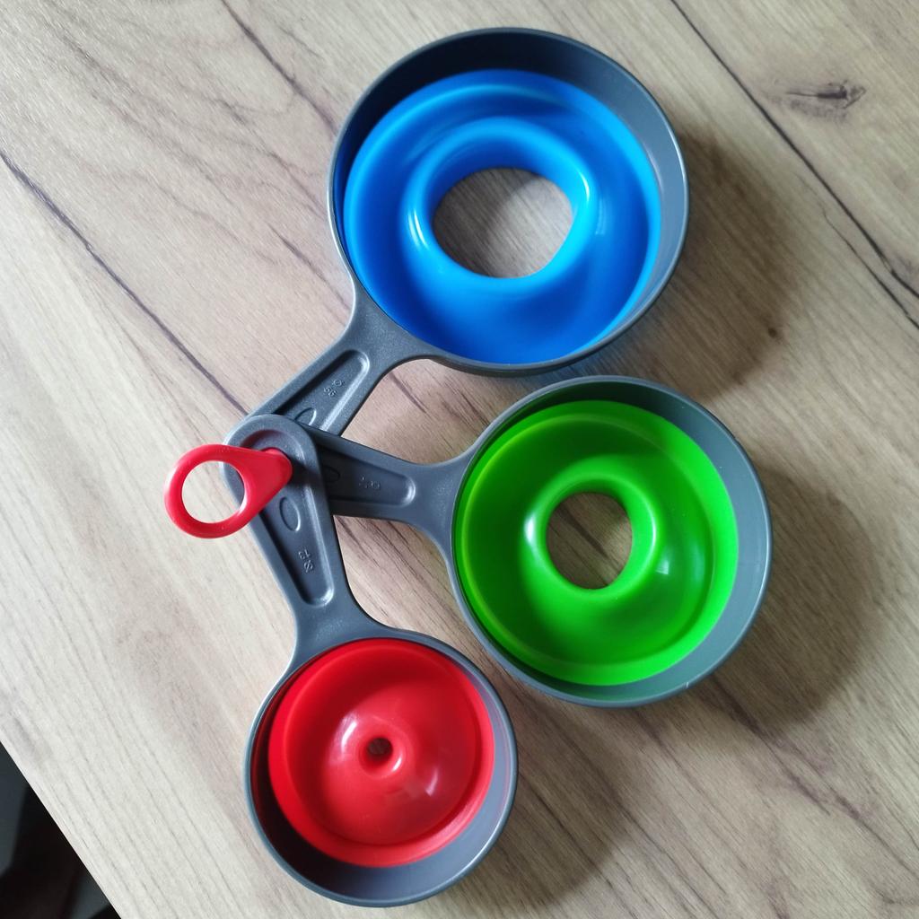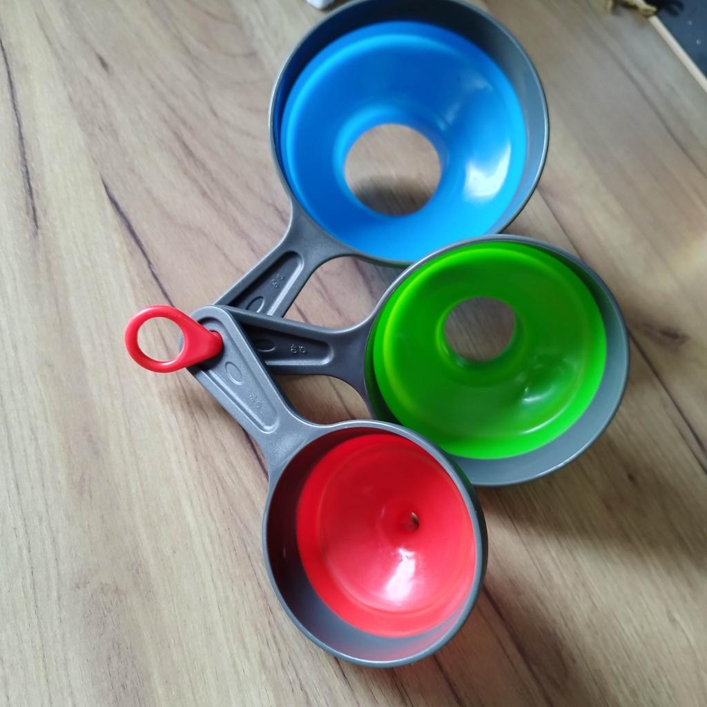 Very convenient and practical funnels. The set consists of three different sizes. Suitable for almost all containers in the kitchen.
