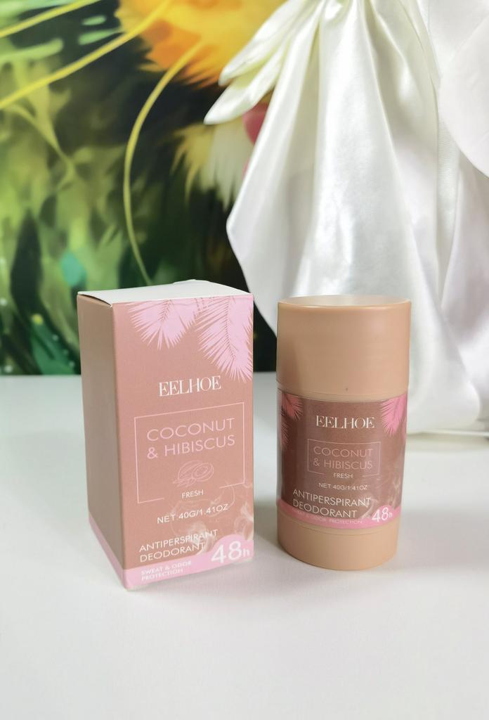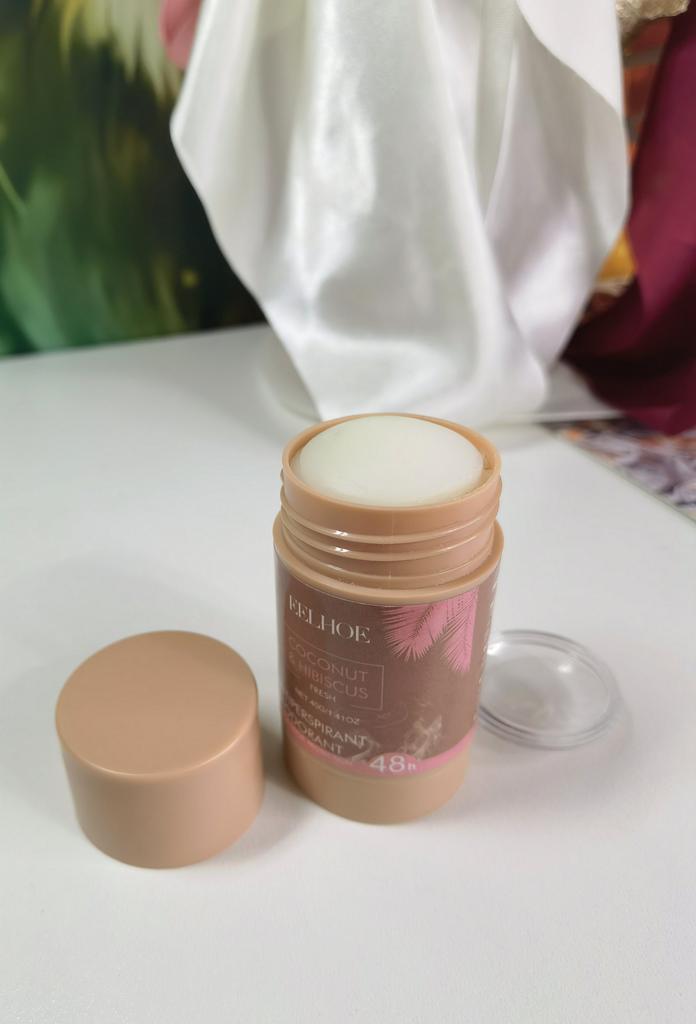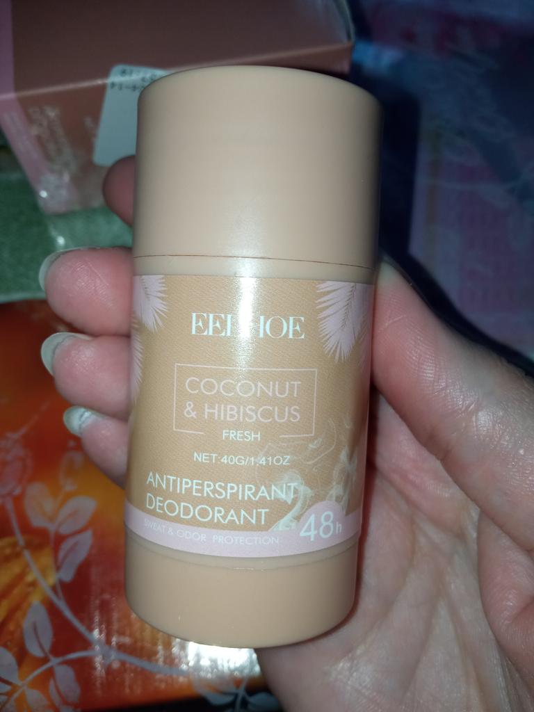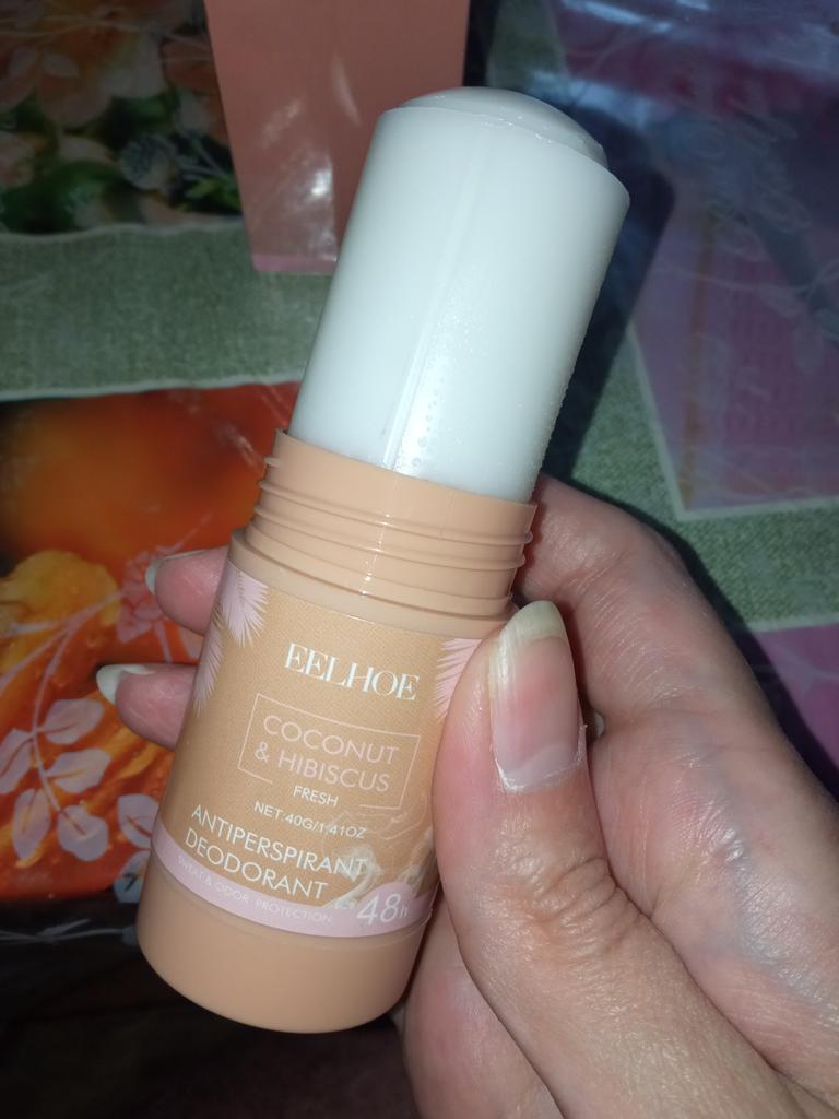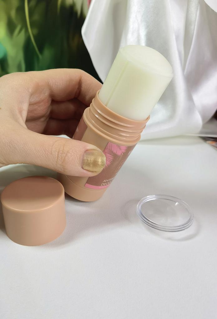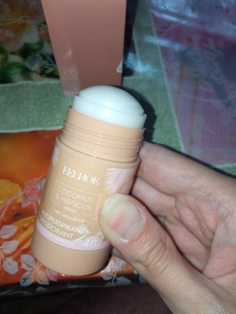 Solid deodorant antiperspirant with coconut scent 🥥 Well, very tasty aroma The pleasant smell lasts throughout the day The deodorant is easy to apply on dry skin. Convenient, compact
