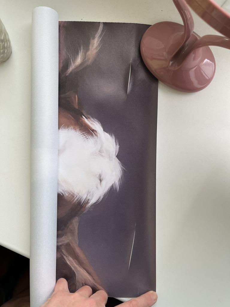 The painting is cut in 2 places((( Before this, I ordered a cow on a blue background - everything was good, but with this one it's a complete disappointment.