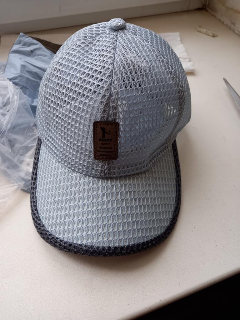 Cap for a woman's head. It suits me very well! The bluish-gray color matches the color of my eyes very well. It's windproof and protects from the sun. Just what I need.