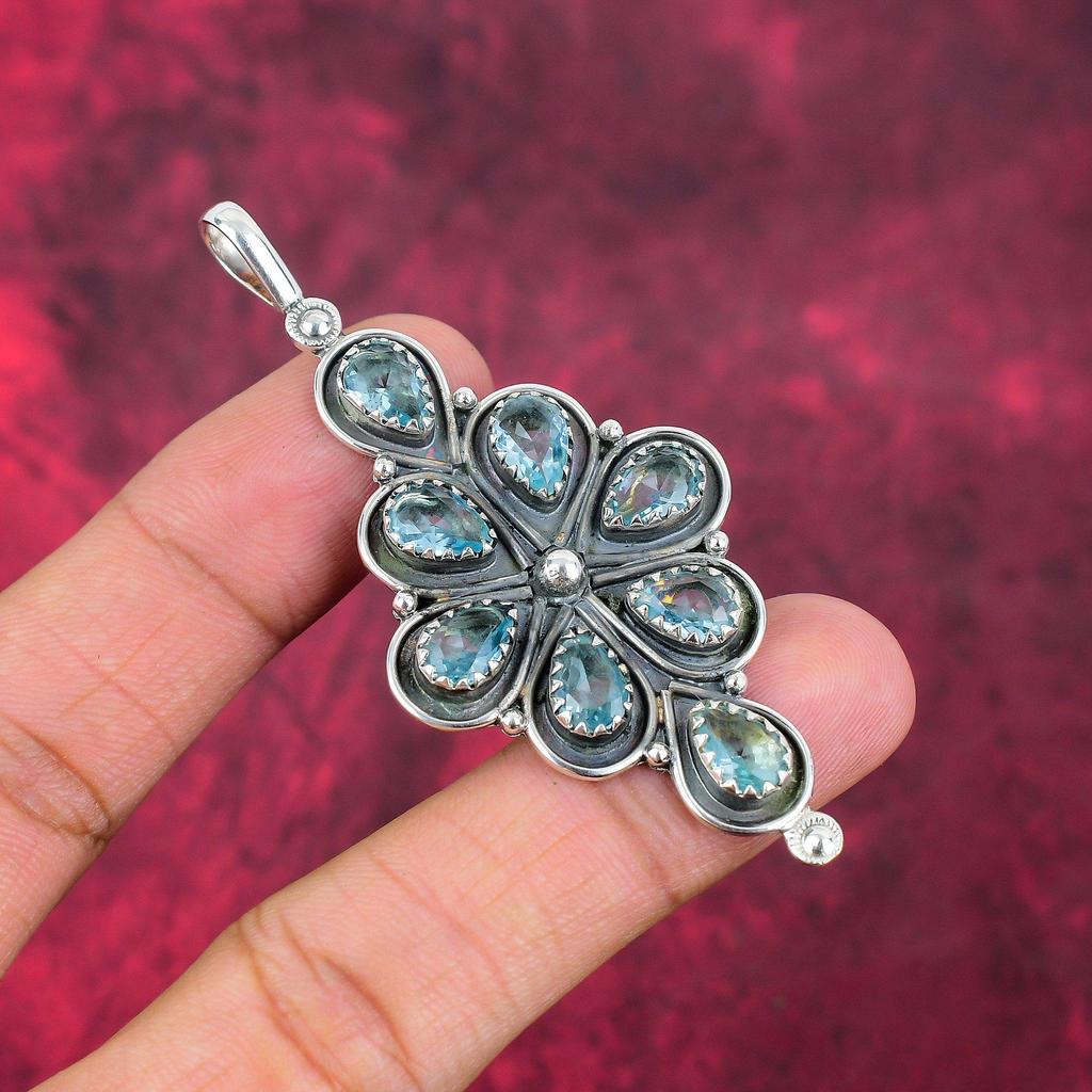 Blue Topaz Pendant, 925 Solid Sterling Silver Gemstone Jewelry, Handmade Pendant, For Thanksgiving