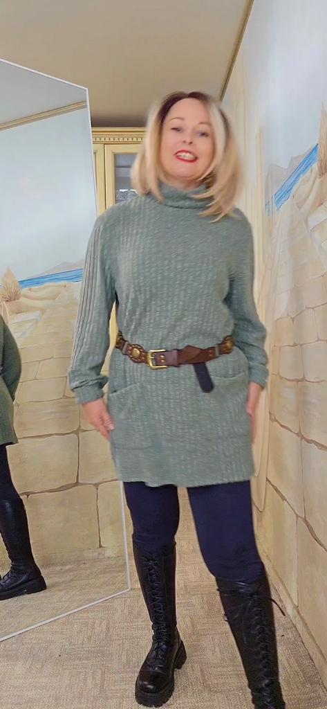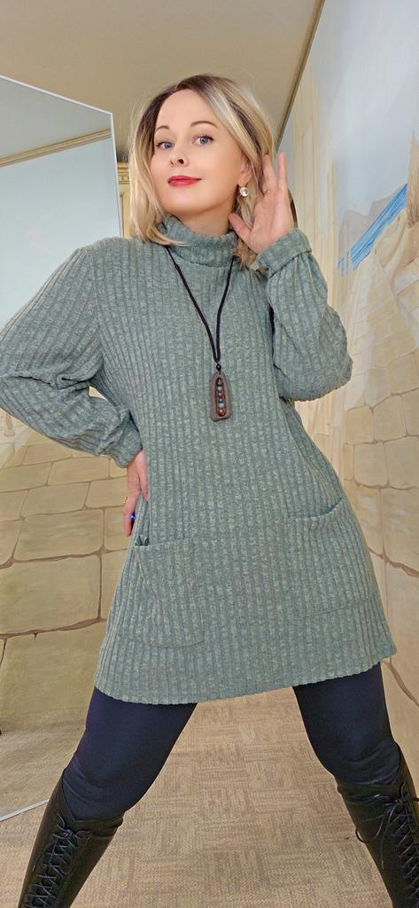 Very cozy and warm long top or can even say a dress.The shop has many colours and sizes to choose from.I ordered size xl on 100cm chest and it fits perfectly.Delivery took 20 days to Ireland.Happy Shopping!