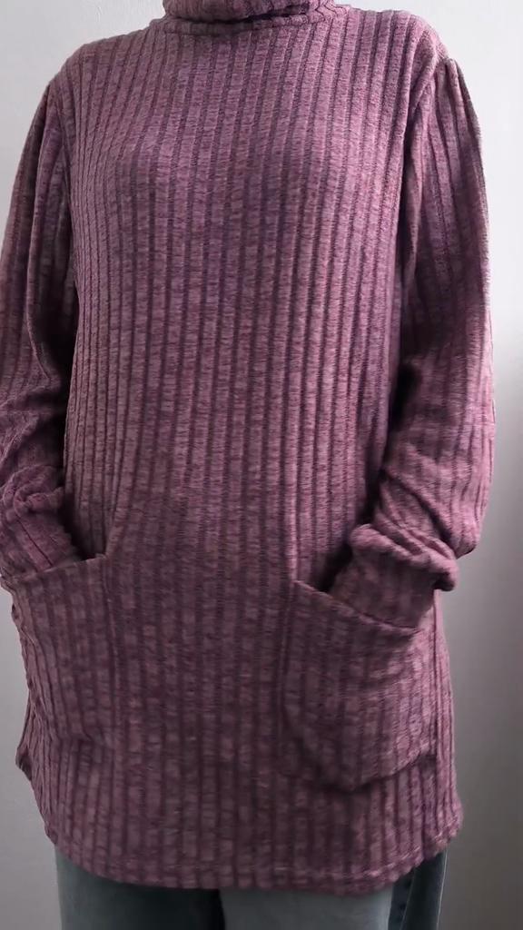 Autumn and Winter Women's Blouse Solid Colour Half-high Neck Long Sleeve Loose Pocket Tops