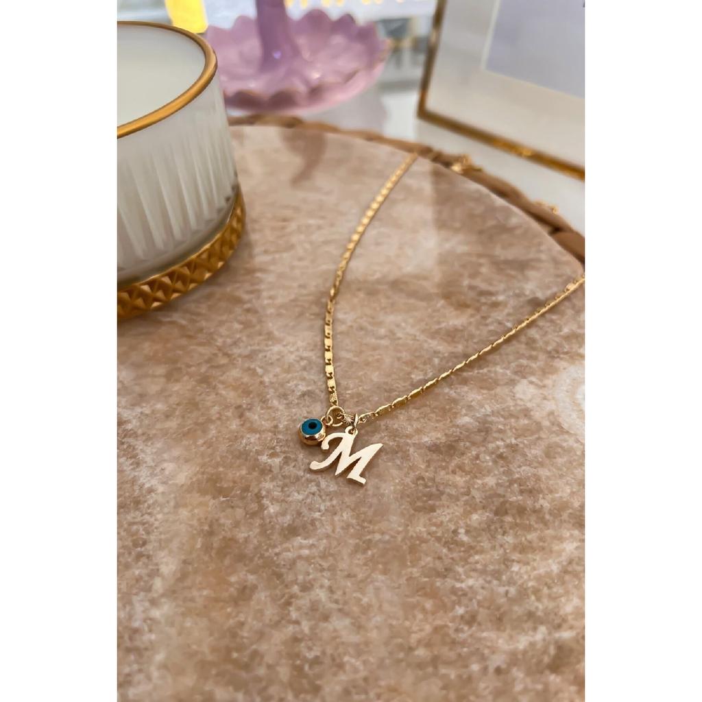 Thin Chain Necklace With Letter M And Evil Eye Pendant