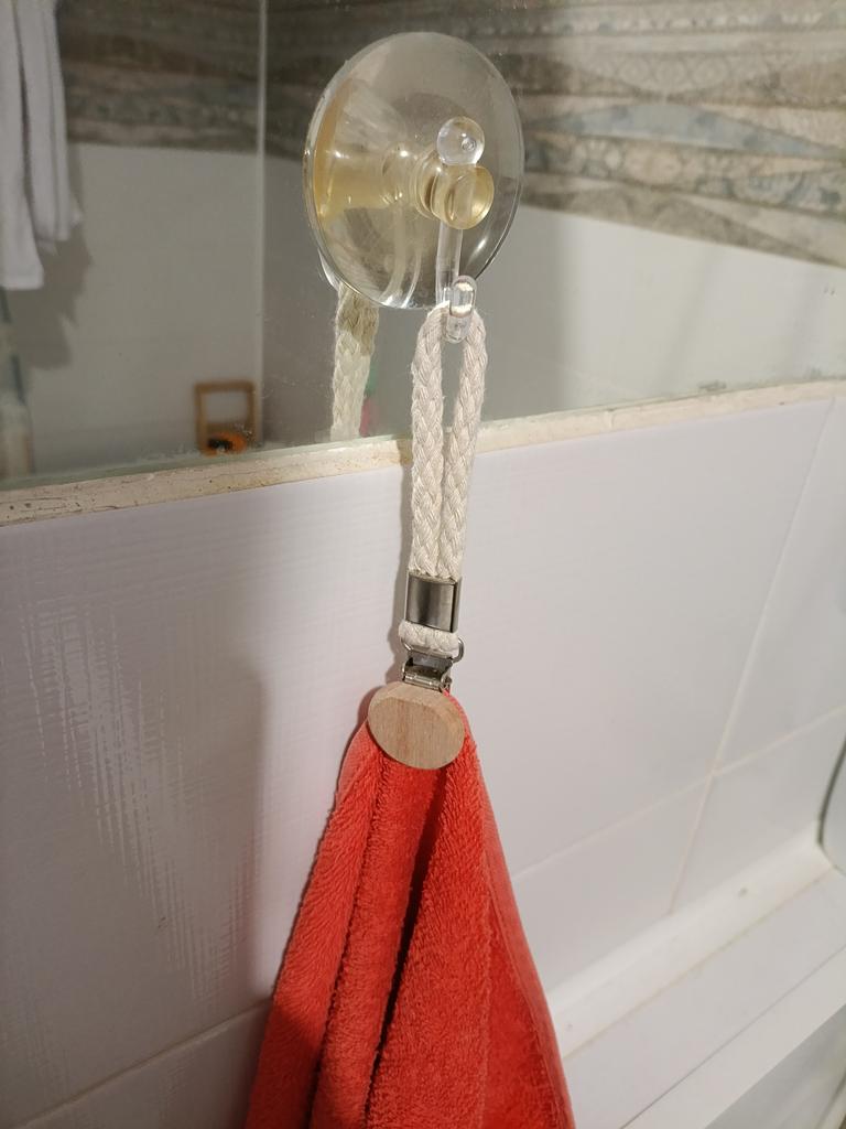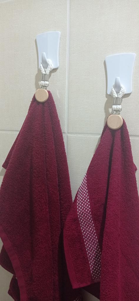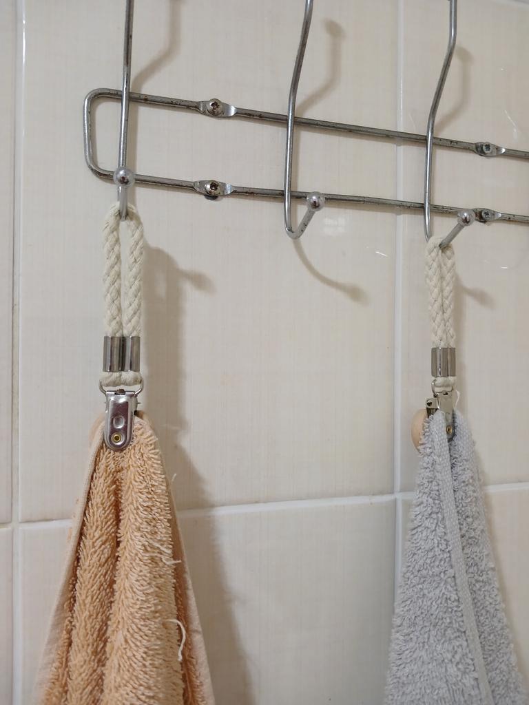 Excellent towel holders. Designed not only for thin towels, but also for thicker ones. The knitted loop is very convenient, as it can be used on any hook.