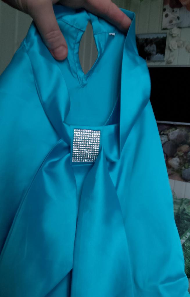 The fabric quality is good, the color matches the advertised one, the model runs a little small and the decorative bow is a bit too small.