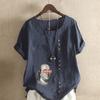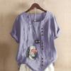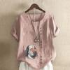 Women's Fashion Round Neck Short Sleeve T-shirt Casual Cotton Linen Graphic Shirt Character Prined Summer Blouse Tops Plus Size