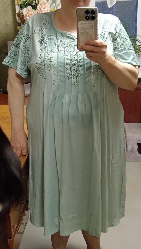 The dress is good, the fabric is pleasant, it fits size 54 just right, but it's more for home.