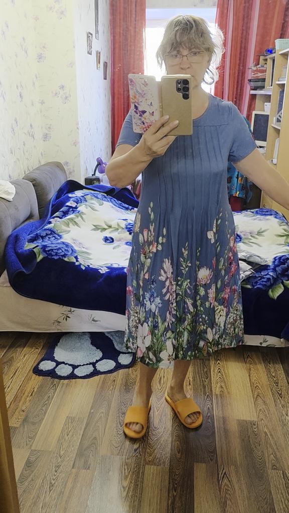 I love this dress, it's very comfortable. The material is veeeery pleasant. And it even has pockets. I'm delighted, it's my best purchase on Joom so far.