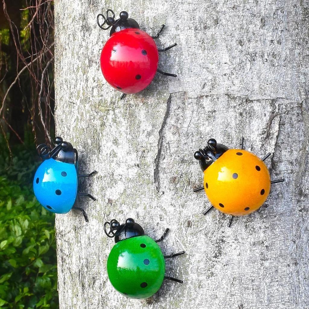 1/4pcs Metal Ladybug Outdoor Patio Garden Fence Decoration, Cute Ladybug Wall Sculpture, Colorful 3D Decoration Backyard Balcony