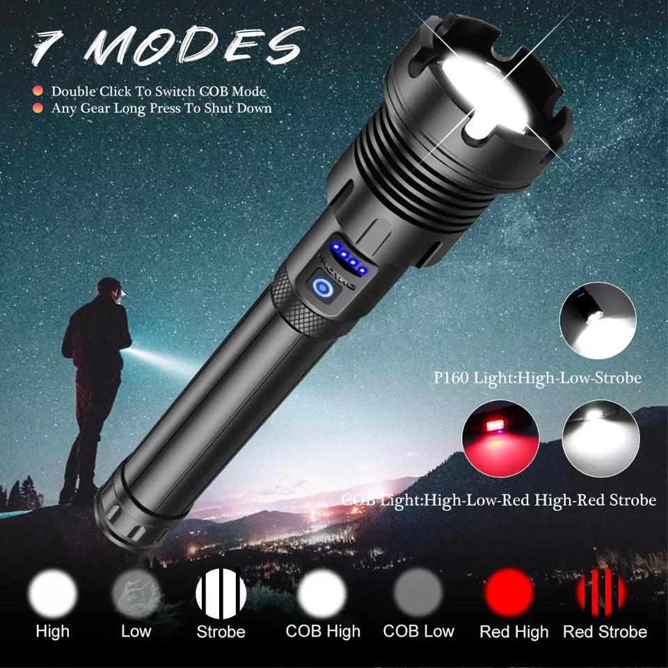 Multiple Lighting Modes XHP70 XHP90 COB Aluminum Rechargeable Zoom Multifunctional Flashlight Tactical Self-defense Flashlight