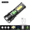Solar USB Rechargeable LED Flashlight COB Side Light 4 Gears Strong Light 1200mah Power Display Waterproof Outdoor Lantern