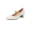 Krazing Pot Full Grain Leather Round Toe Med Heels Autumn Mary Janes Summer Shoes Women Pleated Decoration Pumps