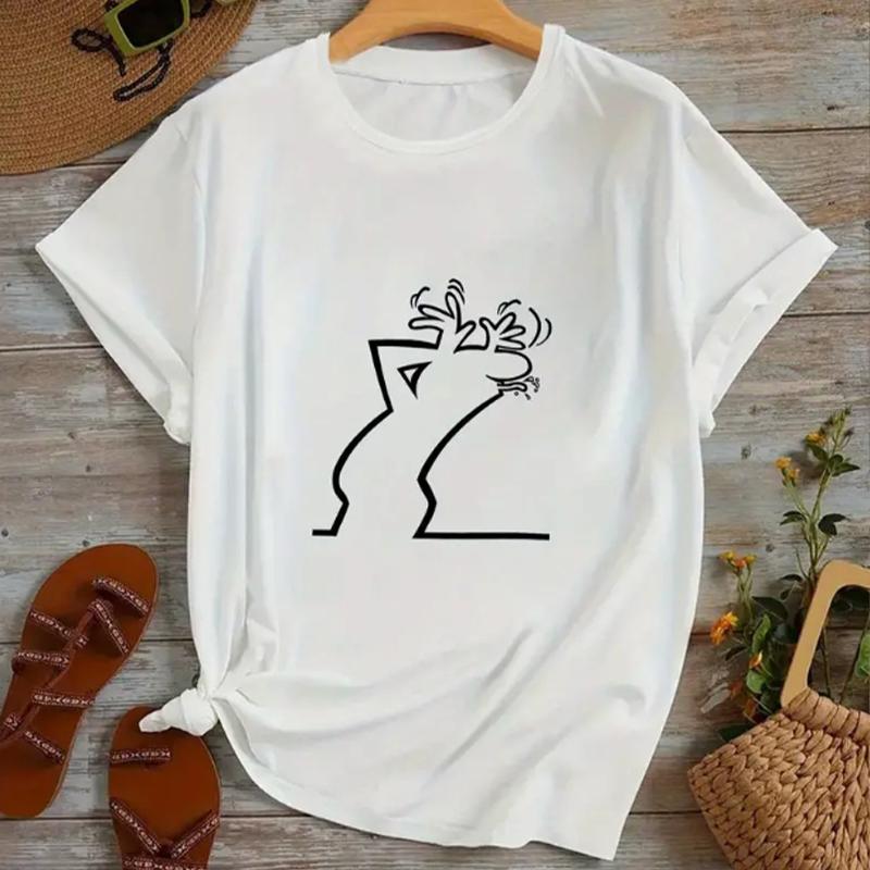 Fashion Women Funny Line Man Print T Shirt Funny Casual O-neck Short Sleeves T-shirt Summer Female Tee Shirt