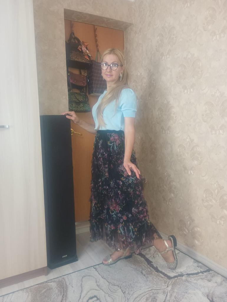 The skirt is simply gorgeous. It fits perfectly on size 106. Airy. And the color is original. The skirt seems to have been sewn especially for me. Thank you, Juma employees.