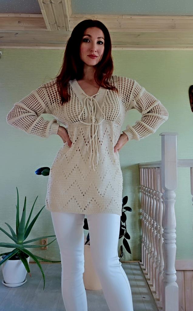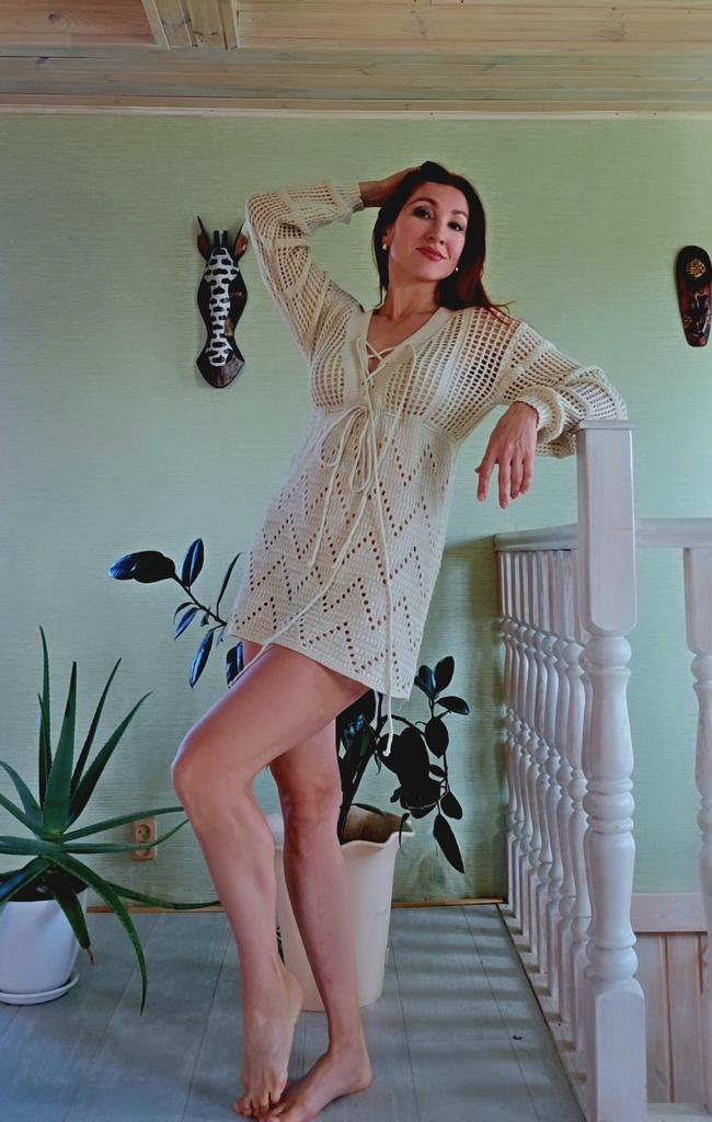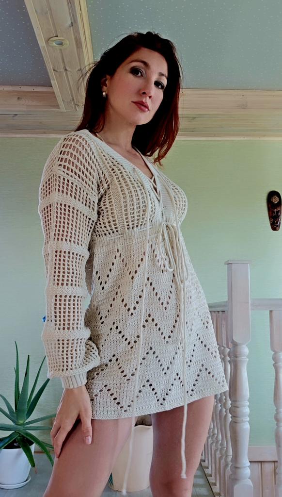 EDOLYNSA Sexy Deep V-neck Lace-up Bell Sleeve Knit Mesh Hollow Out Beach Mini Dress 2024 Summer Swimsuit Cover Up Women Casual Tunic K14