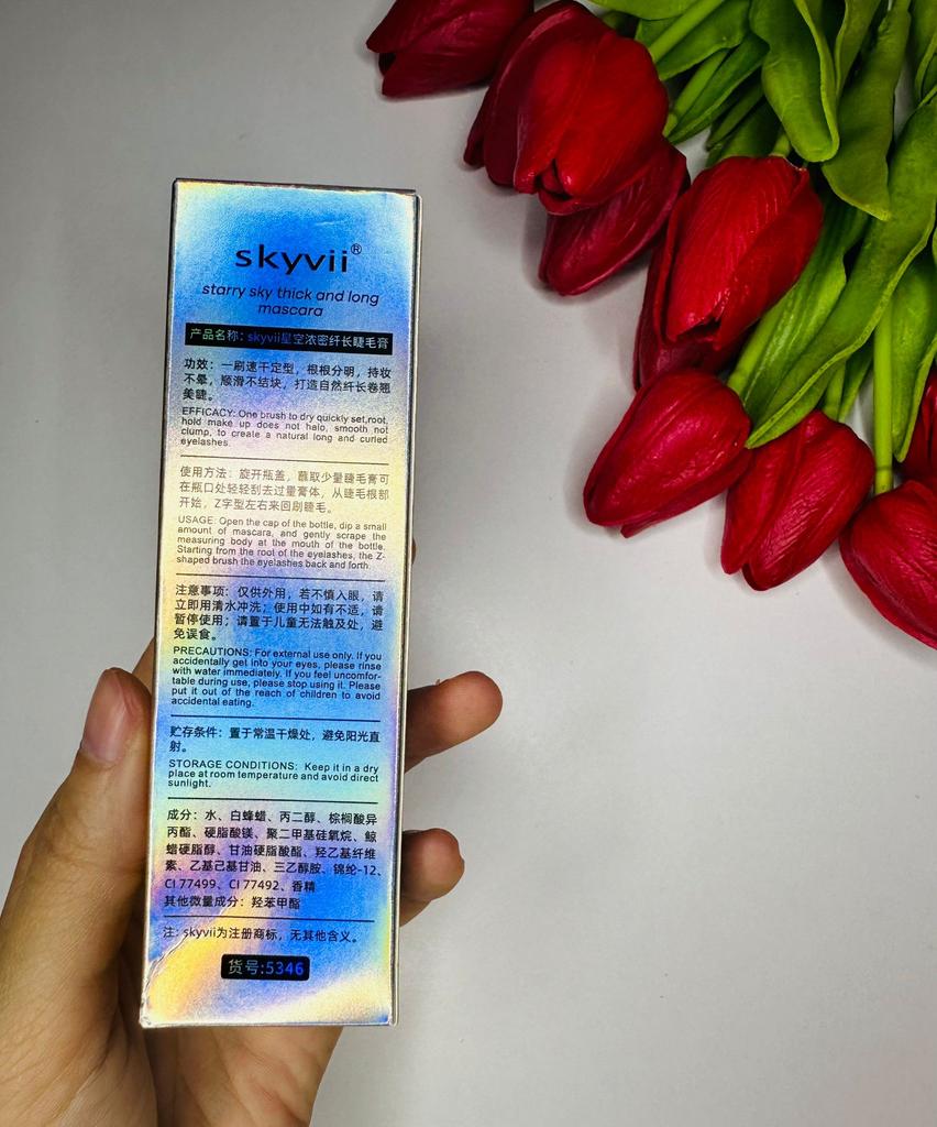 Mascara from the brand "Skyvii" β¨ The color is black π€ The mascara has a convenient silicone brush that separates and colors the eyelashes well. Mascara does not fall off, does not spread, no panda effect πΌ, lumps or "floating paws" To achieve the desired effect, it is enough for me to apply mascara in one layer. Mascara slightly lengthens the eyelashes, the look becomes more expressive. It is easily washed off with micellar water π§. I am very satisfied with the purchase βΊοΈ As a bonus, the mascara has a beautiful design with sparkles β¨π If the information was useful, put it as a favorite β€οΈ π€ β€οΈ I received the goods in 25 days in a combined package π The track was tracked completely. The arrival at the point of issue was announced by sms π². Packaging: bubble bag. All the necessary information is present on the box. Expiry dates are indicated. Happy shopping and fast deliveries to everyone ποΈβΊοΈπβ¨ And remember that every woman is a star, so shine brighter πβ€οΈ.