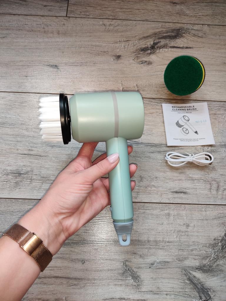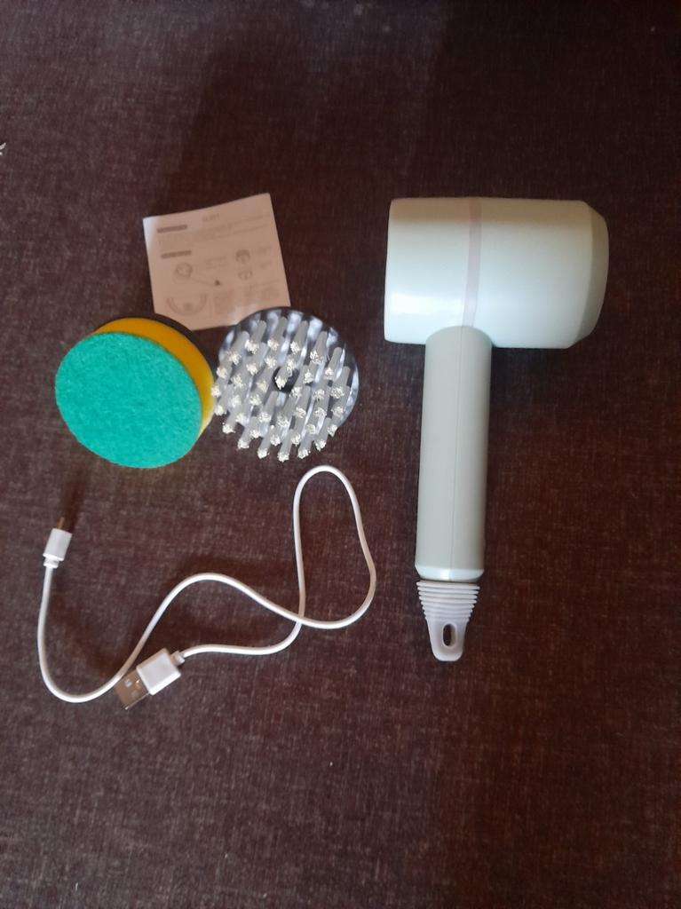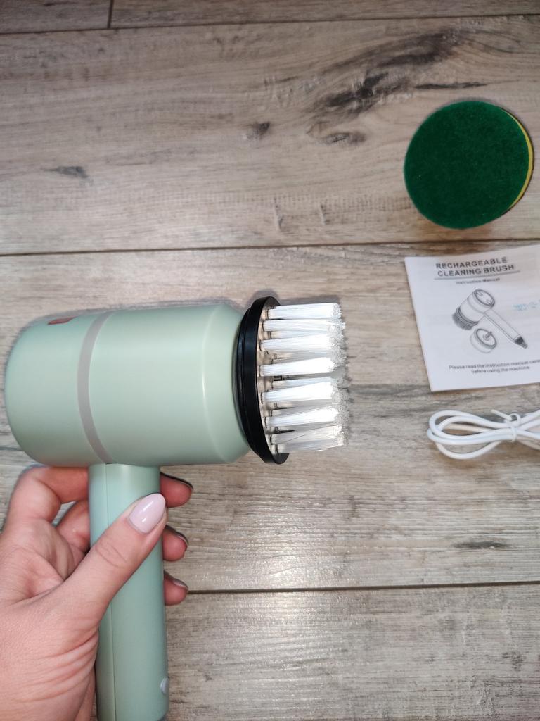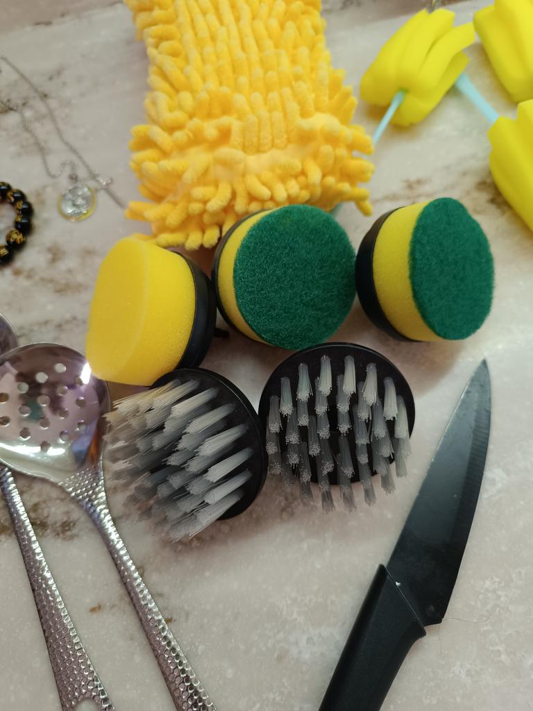 Dishwashing brush, know-how 😻❤️🤗 The brush is excellent, high-quality. It is charged via a USB cable. It has 2 attachments: a sponge and a brush with elastic bristles. There are three rotation modes: the last one is very powerful. Such a brush will make washing dishes and the kitchen not a punishment, but a game. It easily washes away stubborn dirt without chemicals and special efforts. I recommend trying it!!!
