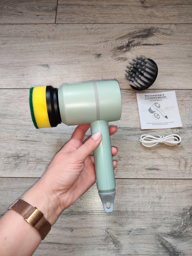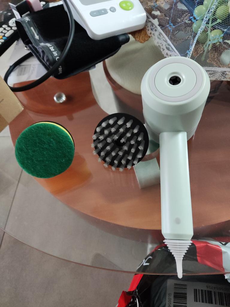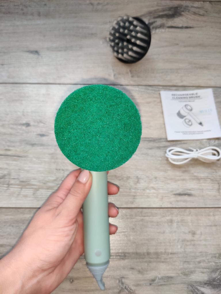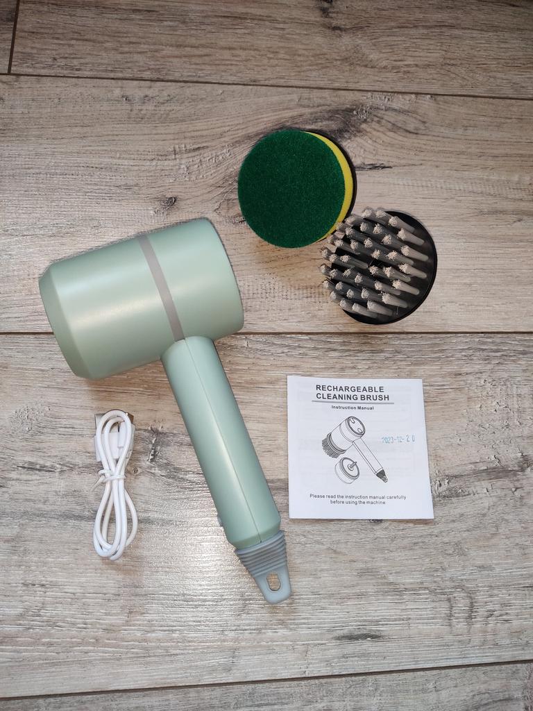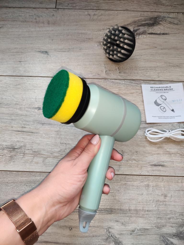 Dishwashing brush, know-how 😻❤️🤗 The brush is excellent, high-quality. It is charged via a USB cable. It has 2 attachments: a sponge and a brush with elastic bristles. There are three rotation modes: the last one is very powerful. Such a brush will make washing dishes and the kitchen not a punishment, but a game. It easily washes away stubborn dirt without chemicals and special efforts. I recommend trying it!!!