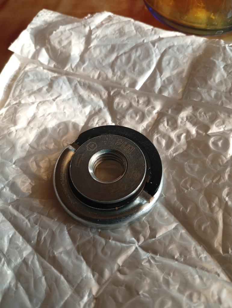 This nut doesn't work at all. When you lift the semi-ring to unscrew it, the lower half should rotate relative to the upper half, there is a ball bearing (separator) between the two halves specifically for this purpose, but it is jammed by the crimping. This is simply a fake((