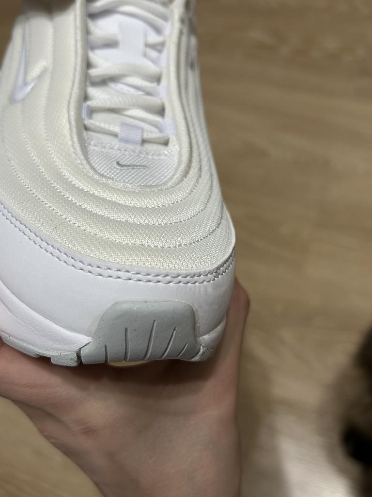 Good running shoes. Fabric material on top and bottom, except for the sole and heel. There is a slight deviation in color: in the photo they are pure white, but the mesh top is milky, yellowish, which stands out in daylight. The sneakers are very soft, the heel is springy, but this only eases the load on the foot.