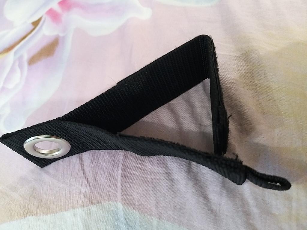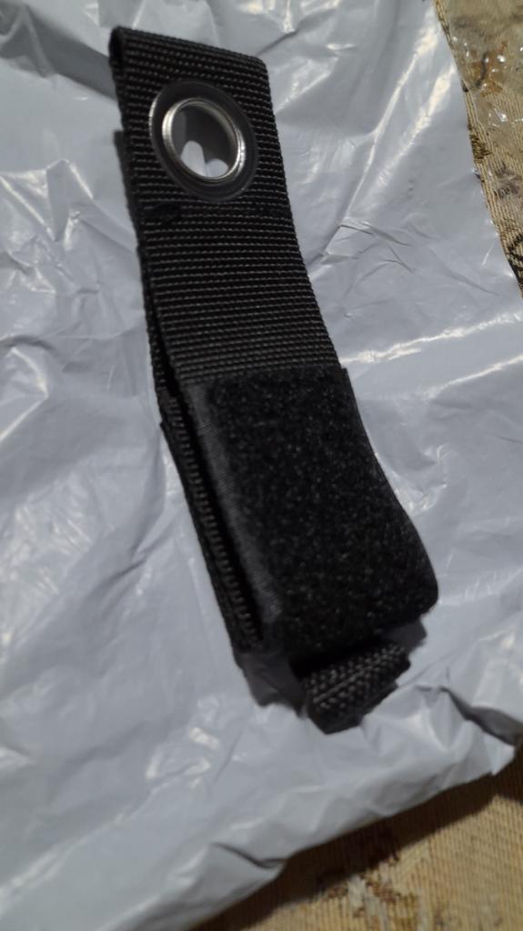 A decent solution for a long cord. The volume is normal, it attaches with Velcro. The strap is strong. The diameter of the hole is sufficient for any mount.