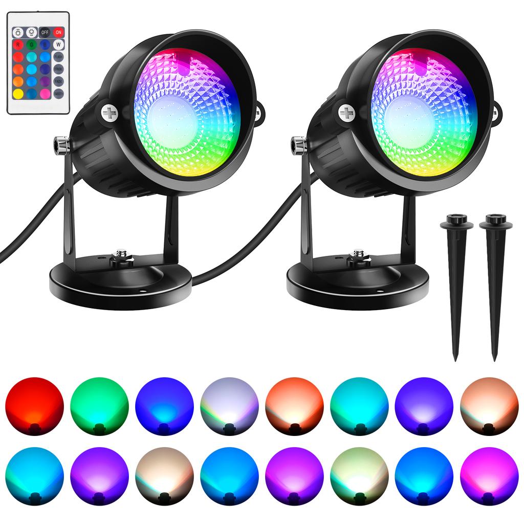 2PCS EU/US/UK Plug 16 Colors 4 Modes RGB Outdoor Landscape Spotlights Floodlights With Remote Control Garden Decorative Lights