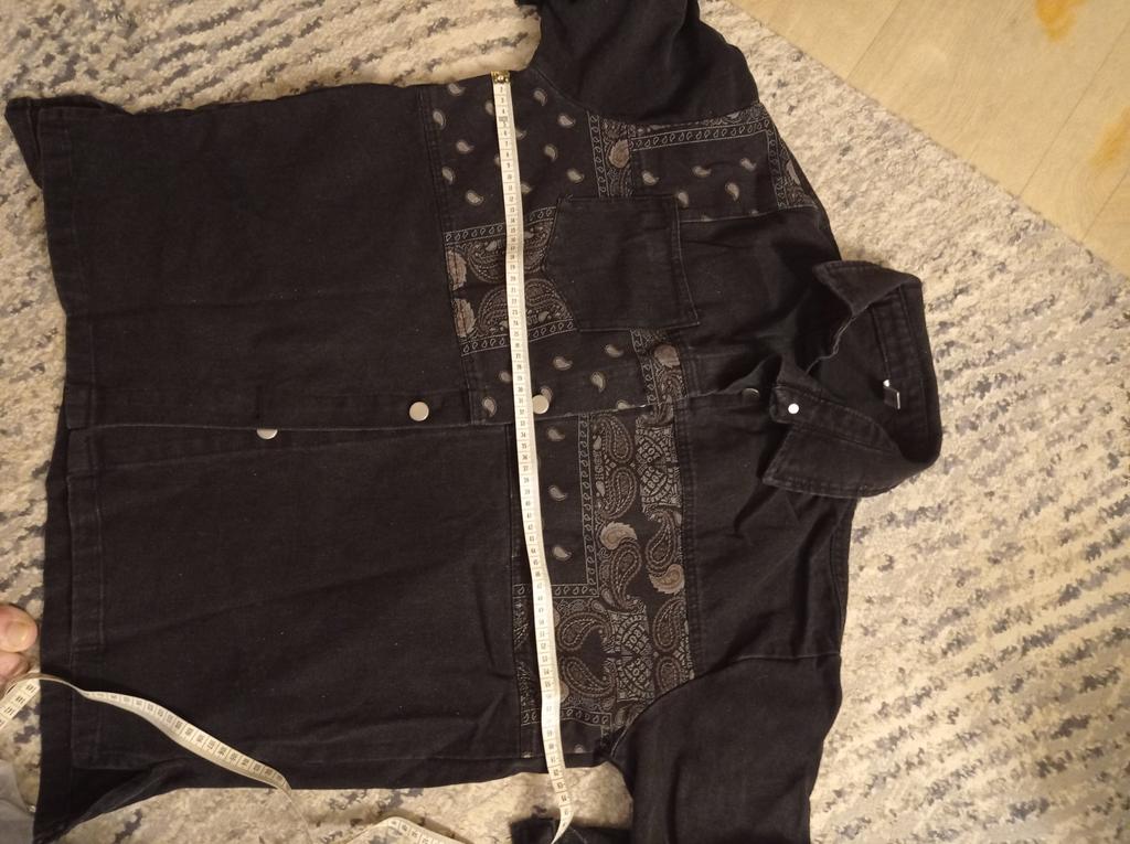 Black Loose Long-sleeved Denim Shirt Women's Spring Lapel Stitching Print Casual Denim Jacket Female Autumn Outwear Tops Plus Size