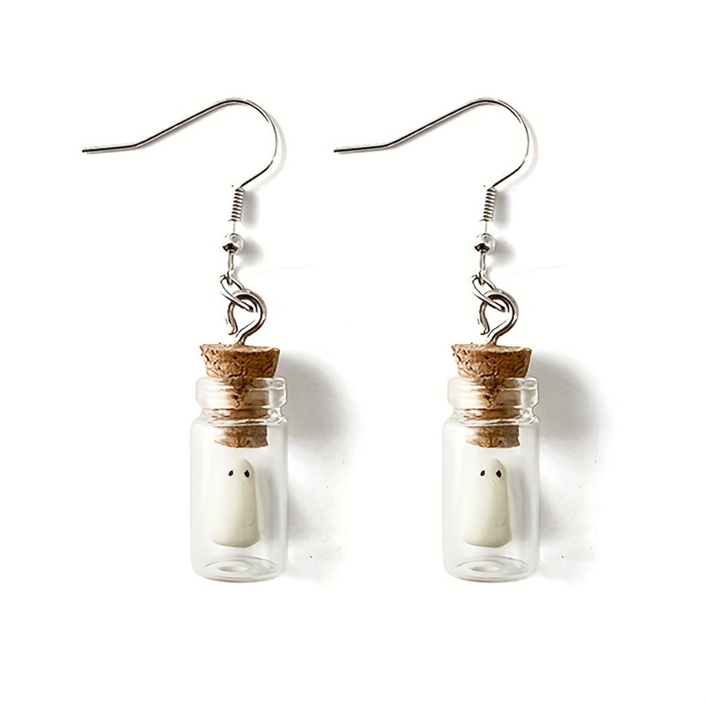 1 Pair Halloween Glowing Ghost In The Drift Bottle Earrings Gothic Charm Cartoon Style Glows In The Dark