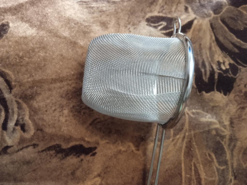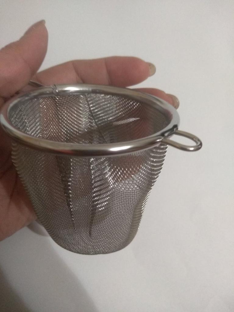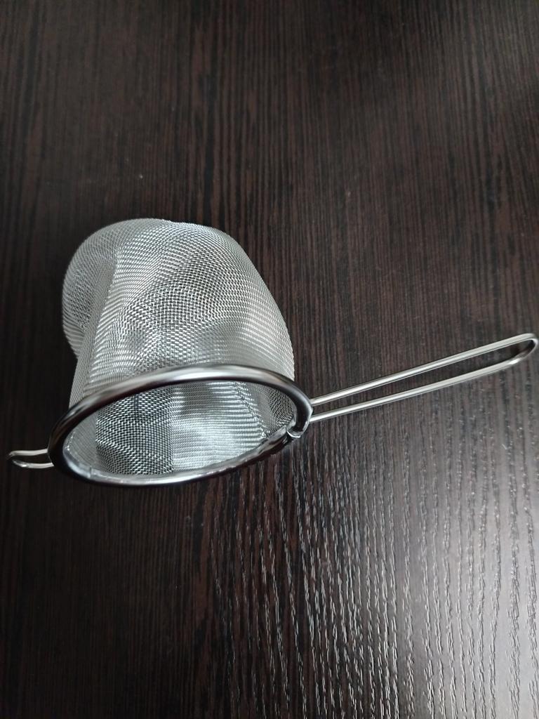 The sieve is convenient, a good size. Suitable for brewing in pots of different sizes. Arrived with a dented mesh, but this does not interfere with anything.