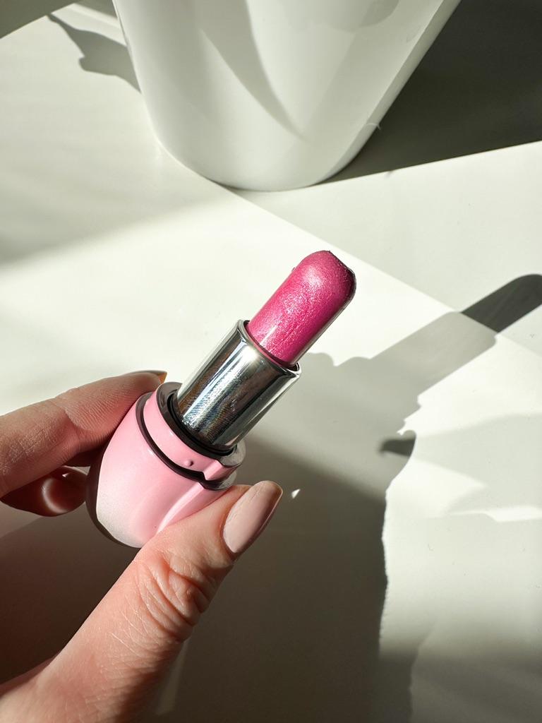 The lipstick is beautiful, intact, and moisturizes the lips.