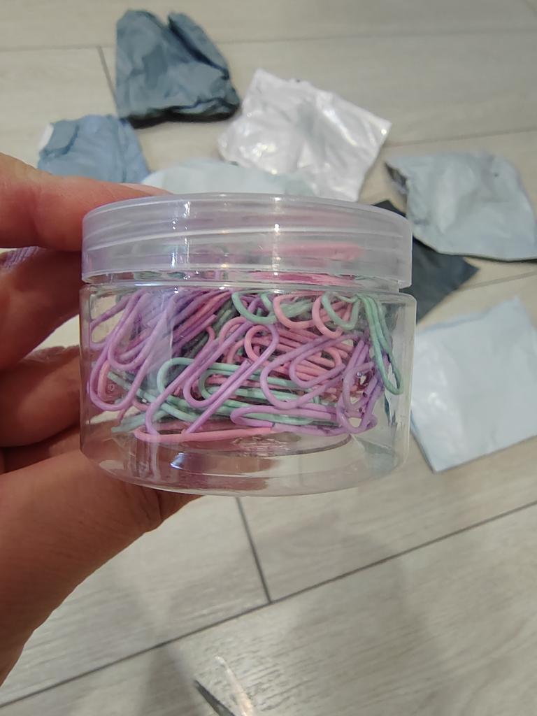 Everything is good, the paper clips are indeed colorful, the packaging suits me!