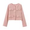 Women's Fashion and Casual Versatile Round Neck Flip Decoration Short Suit Coat Plus Size