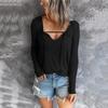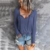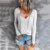 Autumn and Winter Leisure V-neck Solid Color Hedging Thin Long-sleeved T-shirt Women