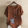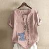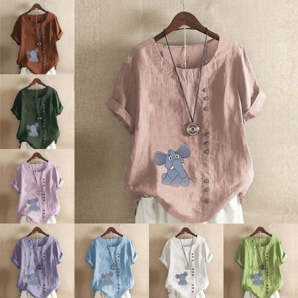 Women's Fashion Elephant Prined Round Neck Short Sleeve T-shirt Casual Cotton Linen Graphic Shirt Leisure Loose Summer Blouse Tops