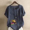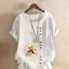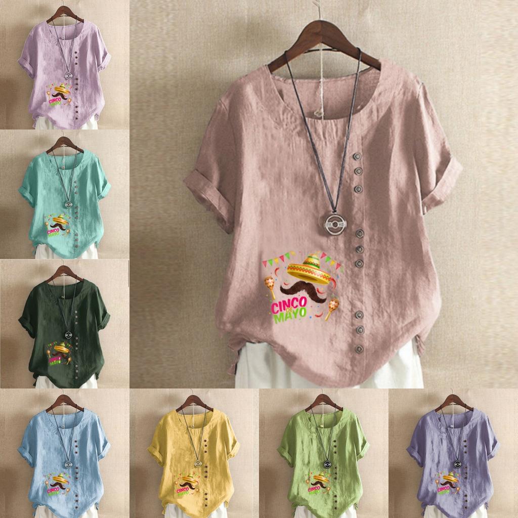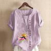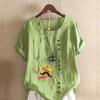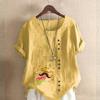 Women's Fashion Round Neck Short Sleeve T-shirt Casual Cotton Linen Graphic Shirt Leisure Loose Beard Prined Summer Blouse Tops