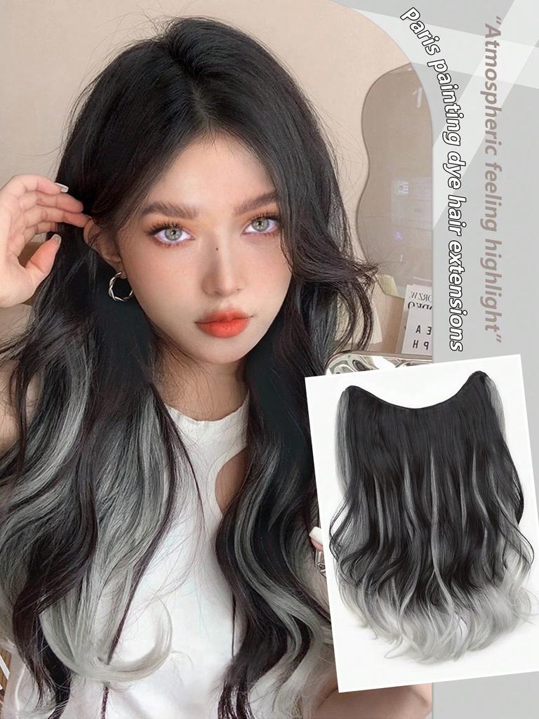 One Piece U-Shaped Hair Extensions Piece Long Wavy Curly Hairstyle Synthetic Highlight Gray Hairpieces Heat Resistant