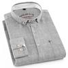 Men's Solid Linen Cotton Versatile Casual Long Sleeve Shirts Single Pocket Button-down Breath Comfortable Soft Slim-fit Shirt