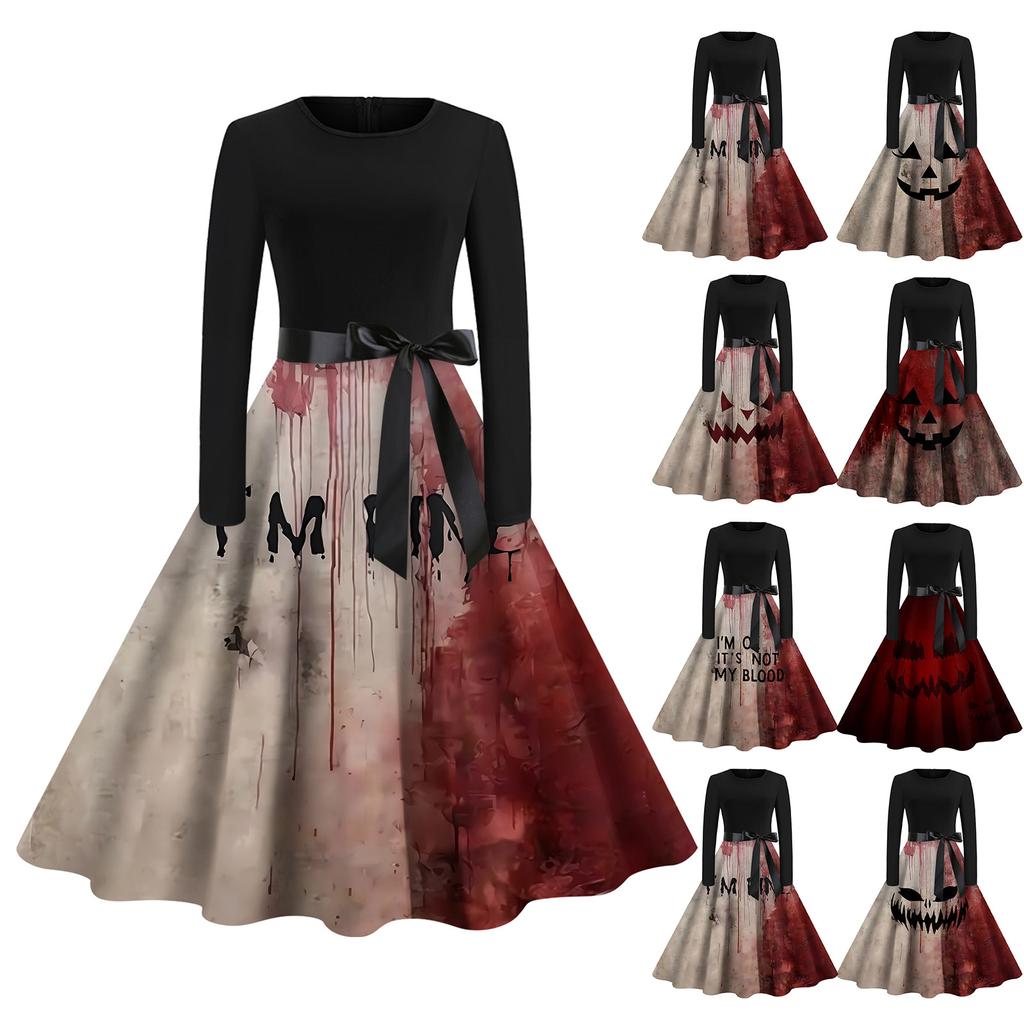 Halloween Women's Casual Fashion Round Neck Printed Vintage Dress