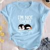 Fashion Women Cute Penguin Alphabet Print T Shirt Funny Casual O-neck Short Sleeves T-shirt Summer Female Tee Shirt