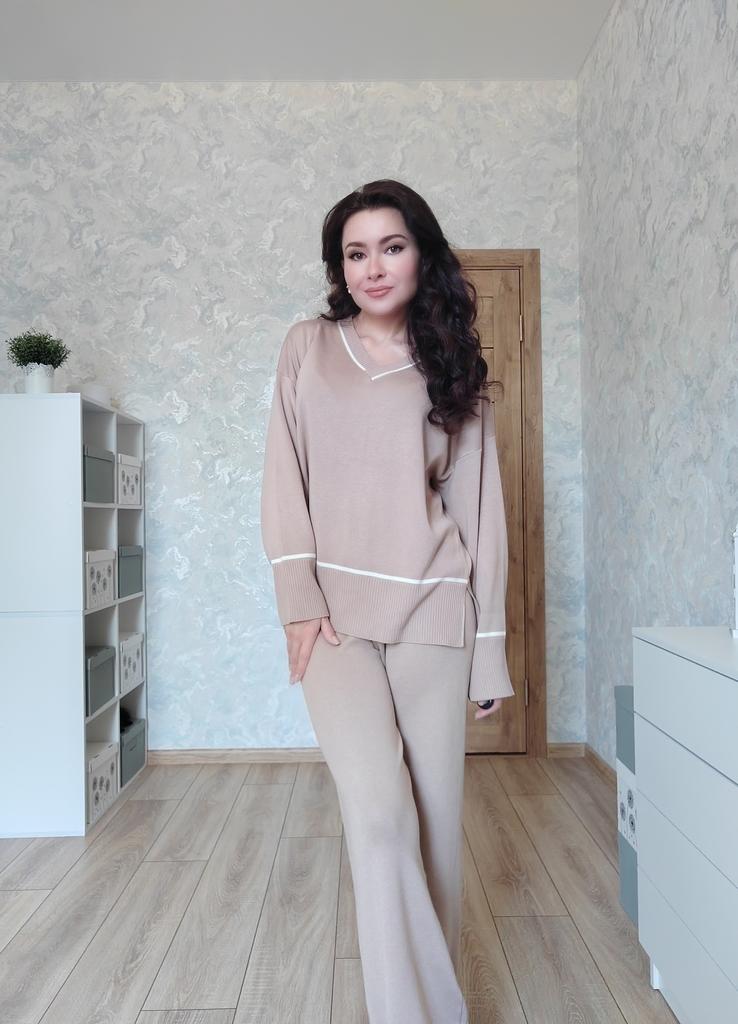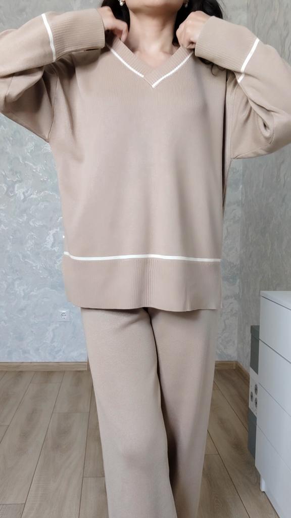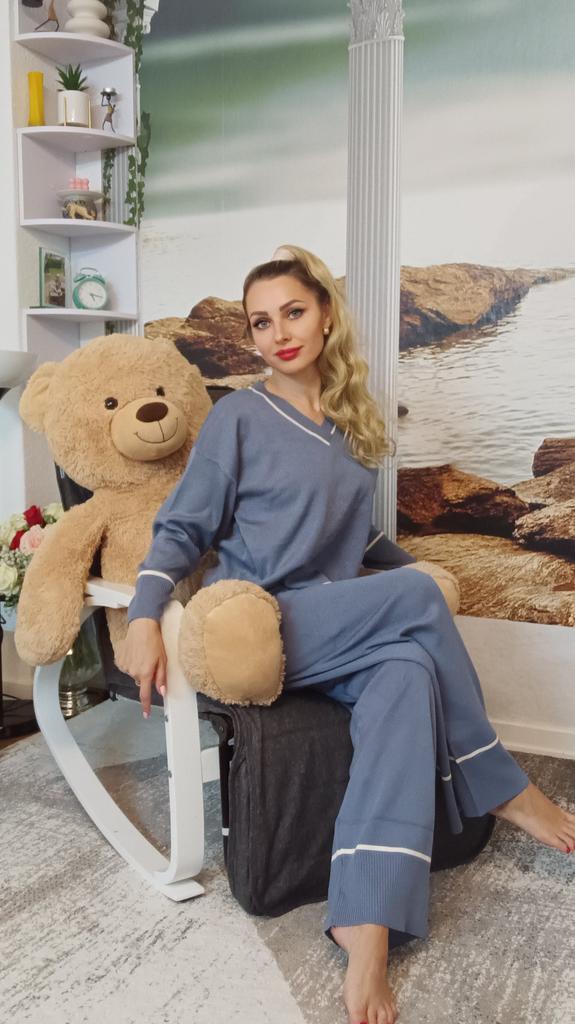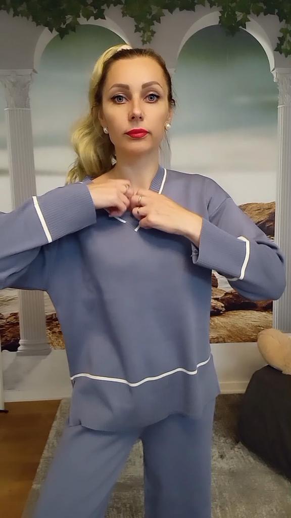 TWO PIECE SET 👕👖 🔆 🔆Delivery time 🔆: 15 days to Germany. 🔆Scope of delivery 🔆: The delivery includes a trouser set, consisting of 2 parts,👕👖 in the appropriate color and size. The set is available in 5 different colors. It is available in one size . I ordered it in blue and the set 👕👖fits me perfectly and the color is exactly as pictured! I normally wear a size 36. I weigh 55kg and am 167cm tall. My measurements are 90-65-90cm. The size of the suit is one size. (The manufacturer states: chest 106cm, waist 64 cm, hips 102.) The top has a V-neck, which looks really nice! 🔆Quality 🔆: The set is of excellent quality, casual and opaque. , with wide pants. About the material composition: 70% viscose, 30% acrylic. Unfortunately I didn't find a label, but you can understand that the material is a mixture of viscose and acrylic, which is stated in the manufacturer's description . ⬆️⬆️⬆️In summary, it is a beautiful short-sleeved two-piece 👕👖 that is suitable for all seasons 👍👍🔝 Thank you Joom and the seller! 5 stars! 🌟 I would happily recommend the suit!👍👕👖