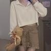 Fall Wear Preppy Polo Neck Hoodie For Women Simple Solid Color Loose And Versatile Short Crop Top
