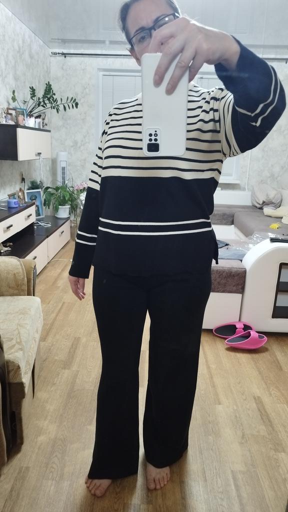 TWO PIECE SET with O-neck 🥼👖 🔆 🔆Delivery time 🔆: 17 days to Germany. 🔆Scope of delivery 🔆: The delivery includes a trouser set, consisting of 2 parts,🥼👖 in the appropriate color and size. The set is available in 5 different colors. It is available in one size . I ordered it in khaki and the set 🥼👖fits me perfectly and the color is exactly as pictured! I normally wear a size 36. I weigh 55kg and am 167cm tall. My measurements are 90-65-90cm. The size of the suit is one size. The top has an O-neck, which looks super nice! 🔆Quality 🔆: The set is of excellent quality, casual and opaque. , with wide pants. About the material composition: 70% viscose, 30% acrylic. Unfortunately I didn't find a label, but you can understand that the material is a mixture of viscose and acrylic, which is stated in the manufacturer's description . ⬆️⬆️⬆️To sum up, it's a beautiful two-piece 🥼👖 that's suitable for all seasons 👍👍🔝 Thank you Joom and the seller! 5 stars! 🌟 I would happily recommend the suit!👍🥼👖