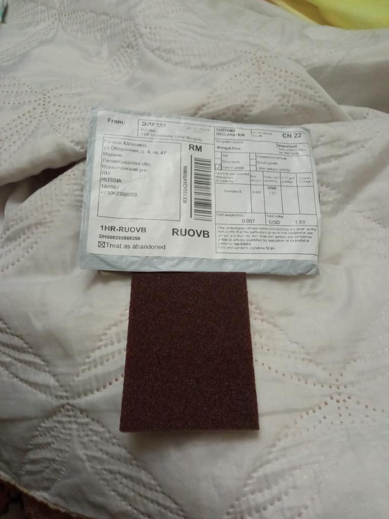 Before this package, I received similar carborundum sponges in another one, but double-sided. This one is for deep cleaning burnt cookware, and with this sponge, you can remove accidental deposits from the pan and immediately wipe the cookware with the soft side.