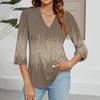 Women's V-neck Gradient Print Three-quarter Sleeve Fashion Top