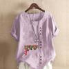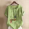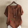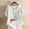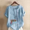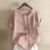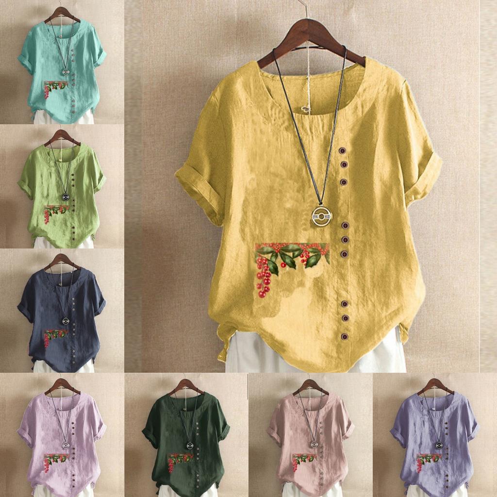 Women's Fashion Chinese Hawthorn Prined Round Neck Short Sleeve T-shirt Casual Cotton Linen Graphic Shirt Leisure Loose Summer Blouse Tops